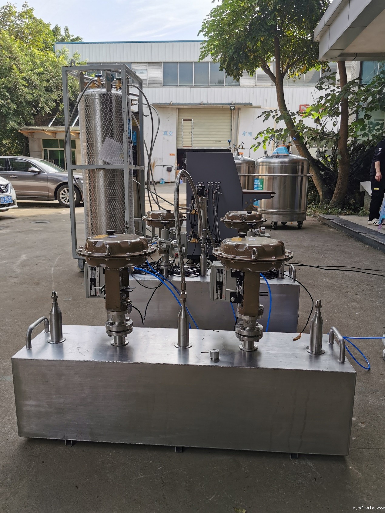 定制液氮罐系统 根据客户需求定做液氮容器补液系统,双罐配置阀体及控制系统一套。用于客户系统的液氮精准补液。